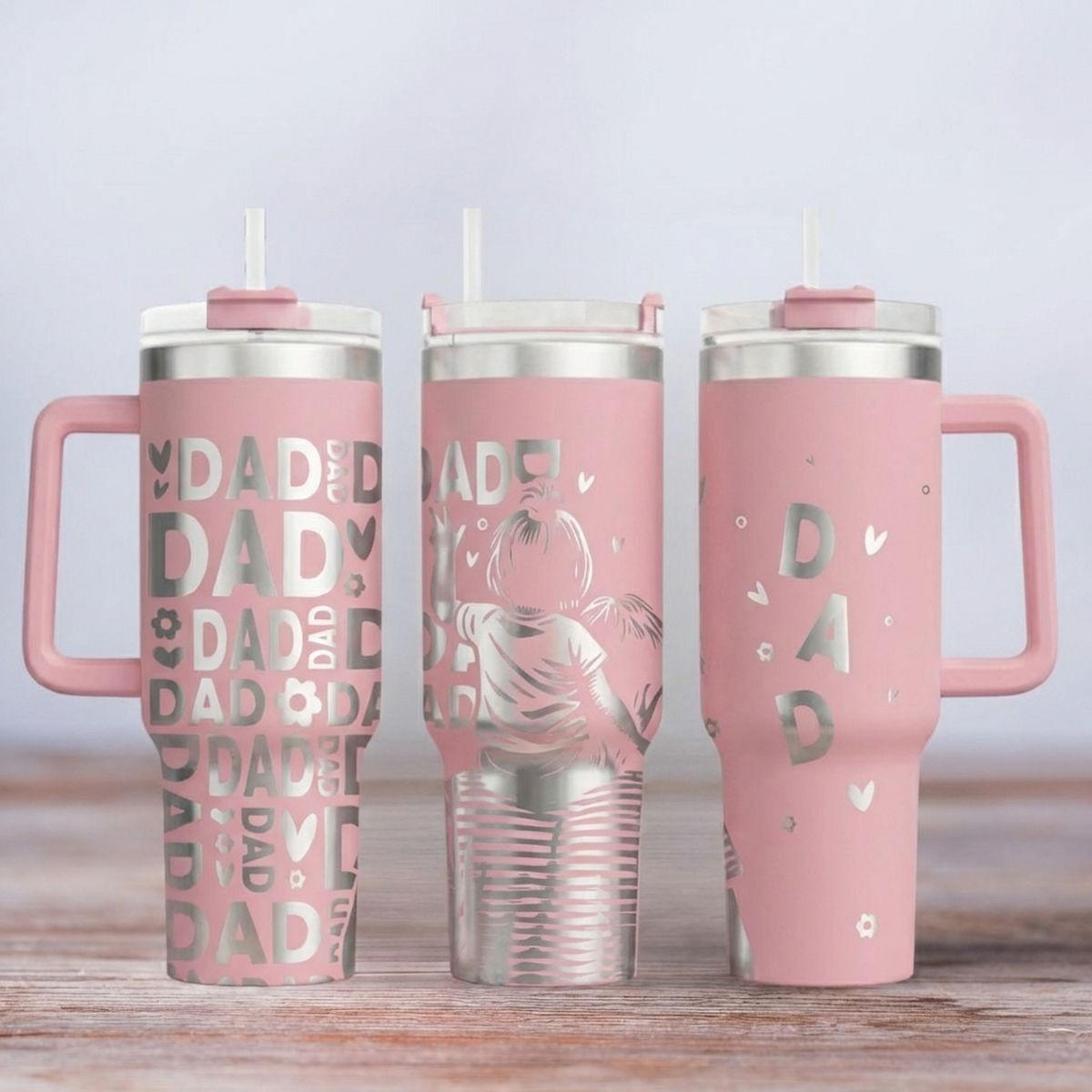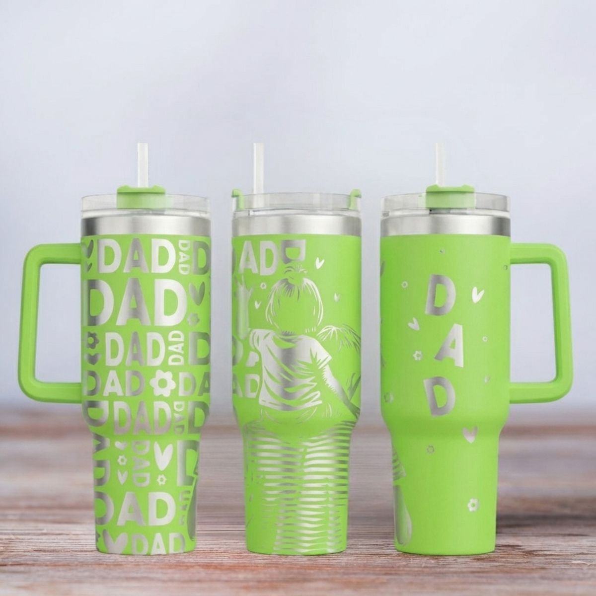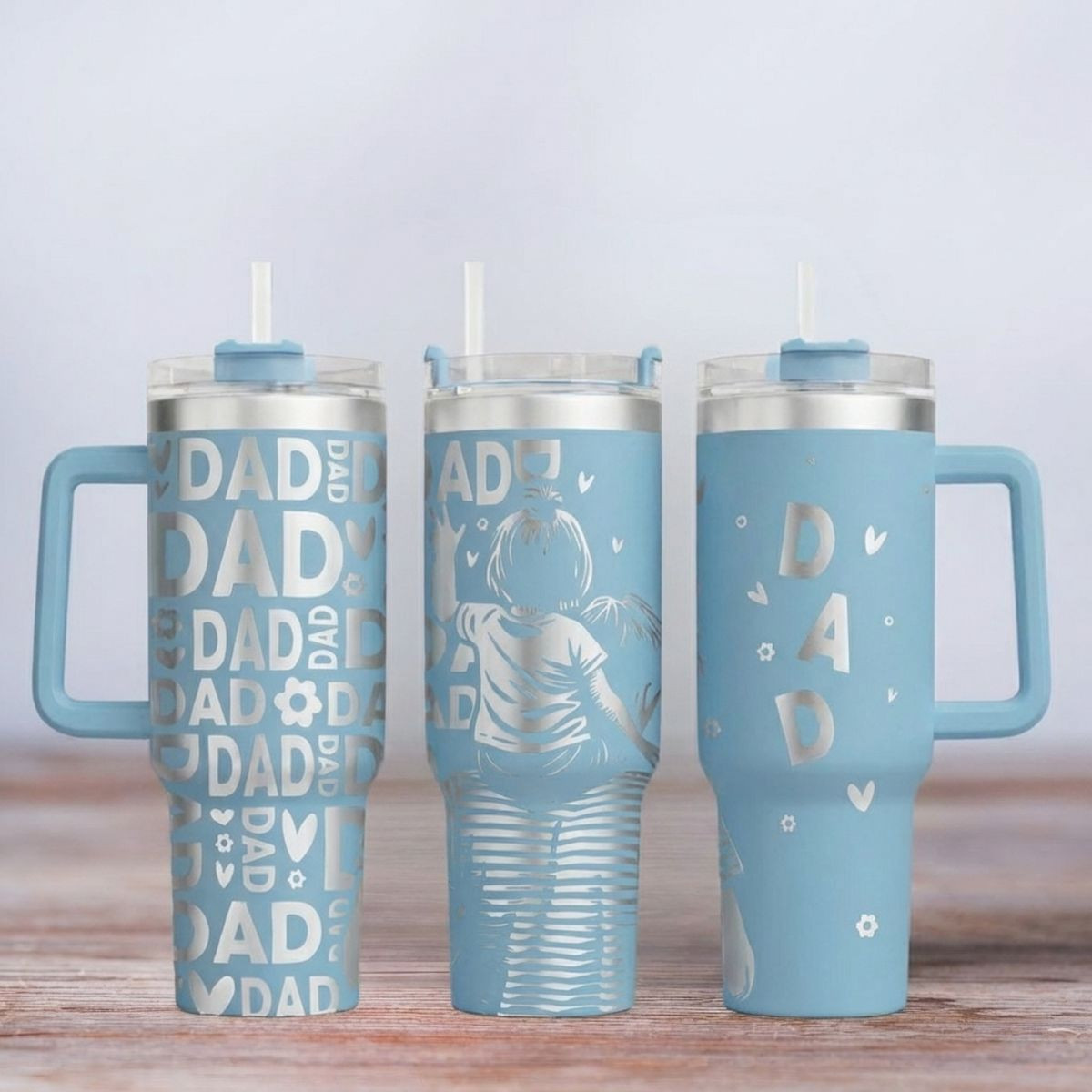 Das hochwertige Material sorgt nicht nur für Robustheit, sondern auch für einen modernen Look. Die präzise Lasergravur macht das Motiv "Dad" zu einem echten Highlight. Mit einem großzügigen Fassungsvermögen von 1,2 Litern bist du immer bestens versorgt – ideal für Kaffee, Tee, Wasser oder Erfrischungsgetränke to go.