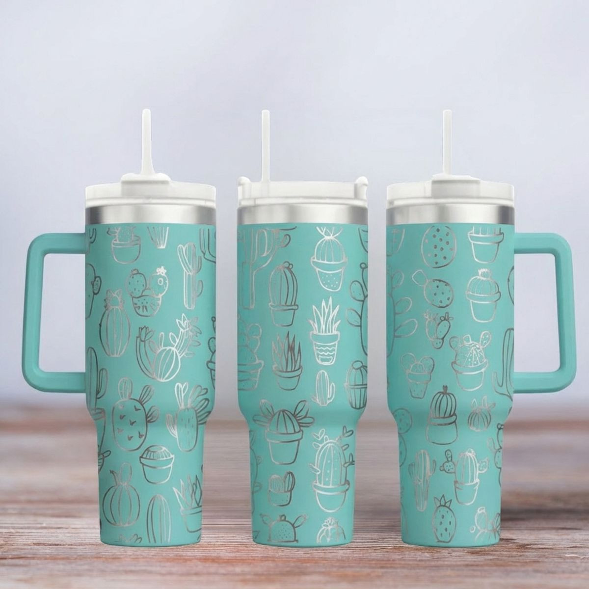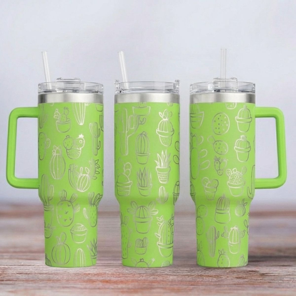 Das hochwertige Material sorgt nicht nur für Robustheit, sondern auch für einen modernen Look. Die präzise Lasergravur macht das Motiv "Kaktus" zu einem echten Highlight. Mit einem großzügigen Fassungsvermögen von 1,2 Litern bist du immer bestens versorgt – ideal für Kaffee, Tee, Wasser oder Erfrischungsgetränke to go.