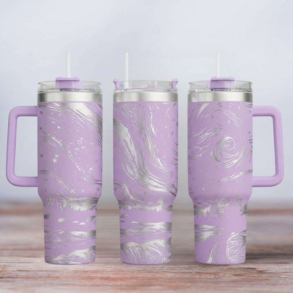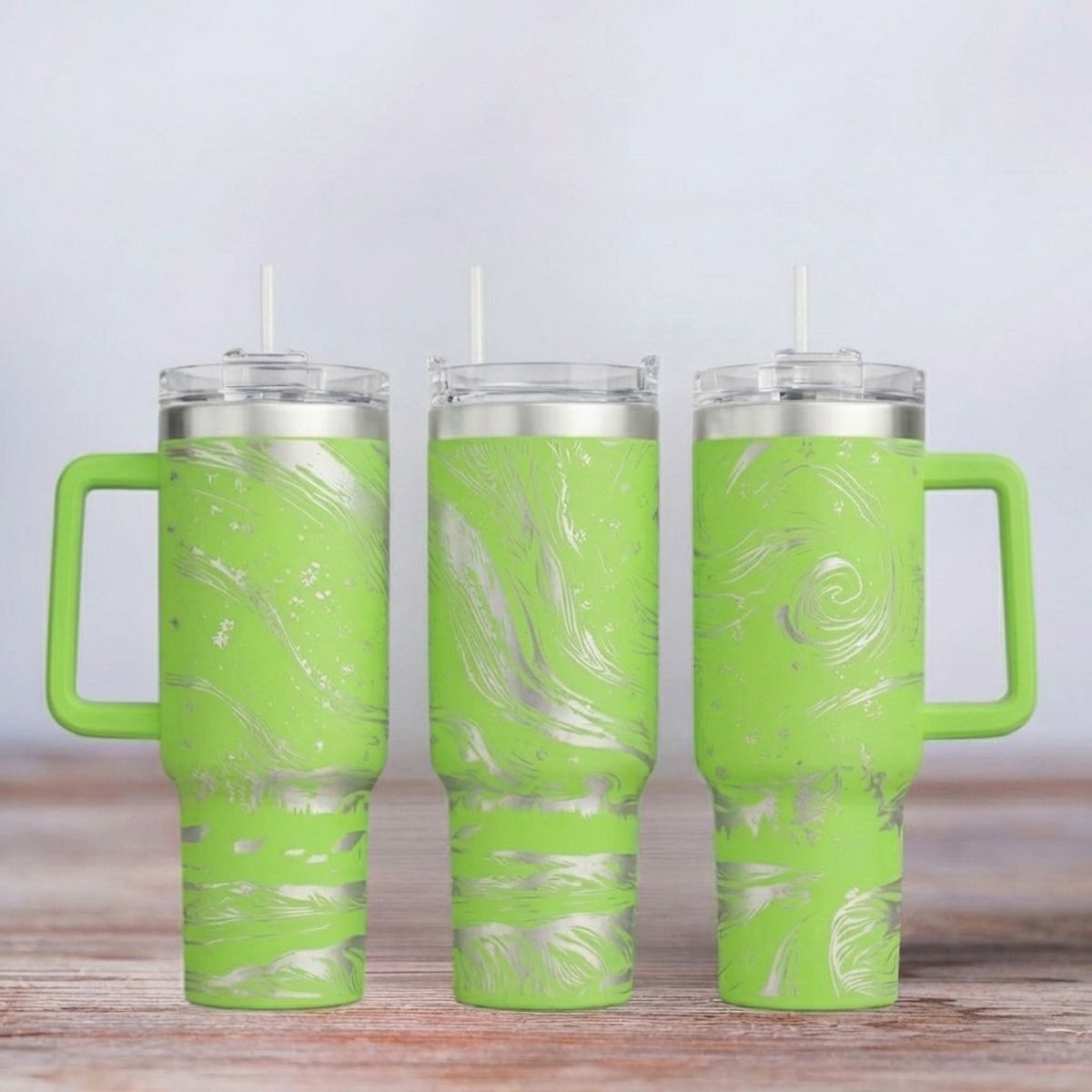 Das hochwertige Material sorgt nicht nur für Robustheit, sondern auch für einen modernen Look. Die präzise Lasergravur macht das Motiv "Northern Lights" zu einem echten Highlight. Mit einem großzügigen Fassungsvermögen von 1,2 Litern bist du immer bestens versorgt – ideal für Kaffee, Tee, Wasser oder Erfrischungsgetränke to go.
