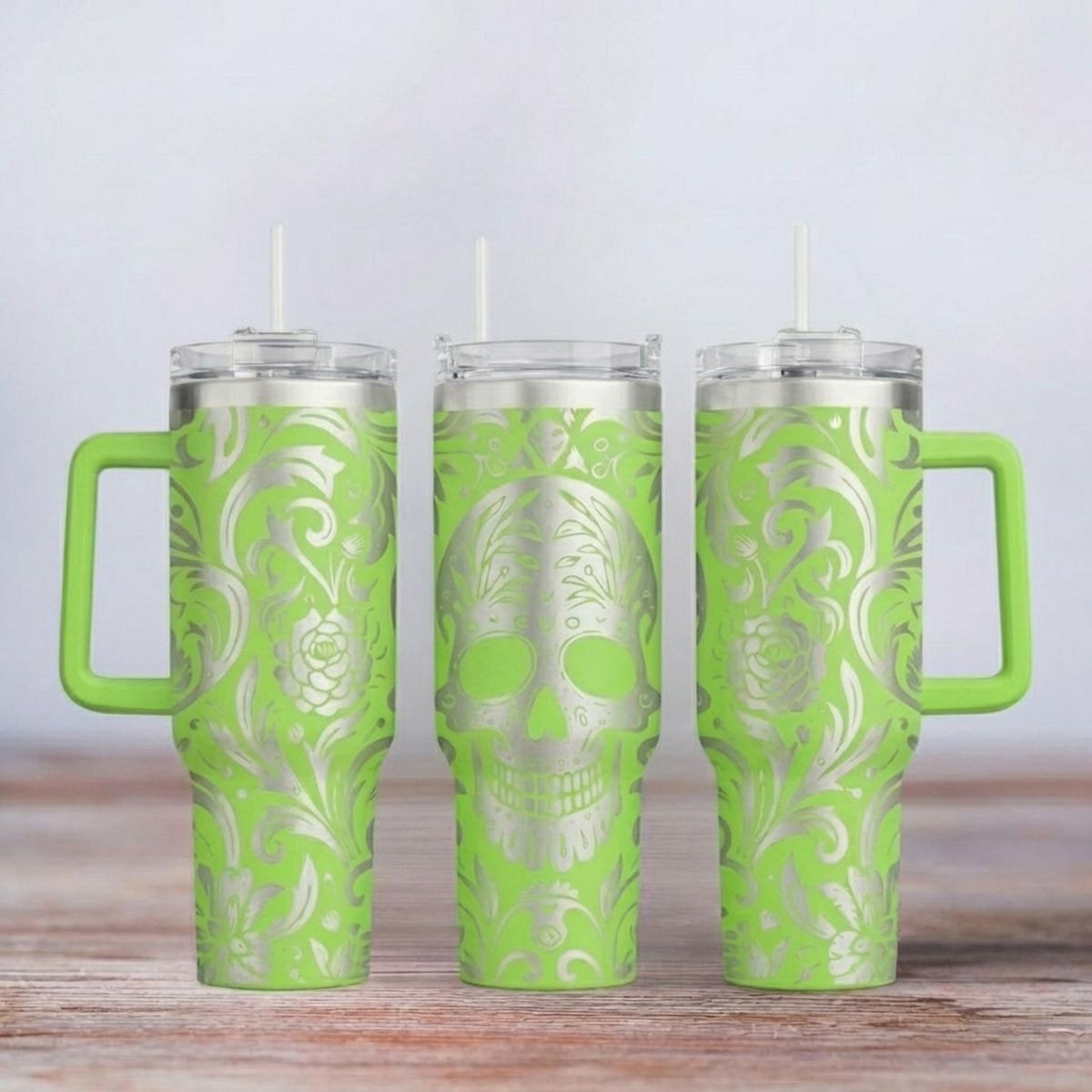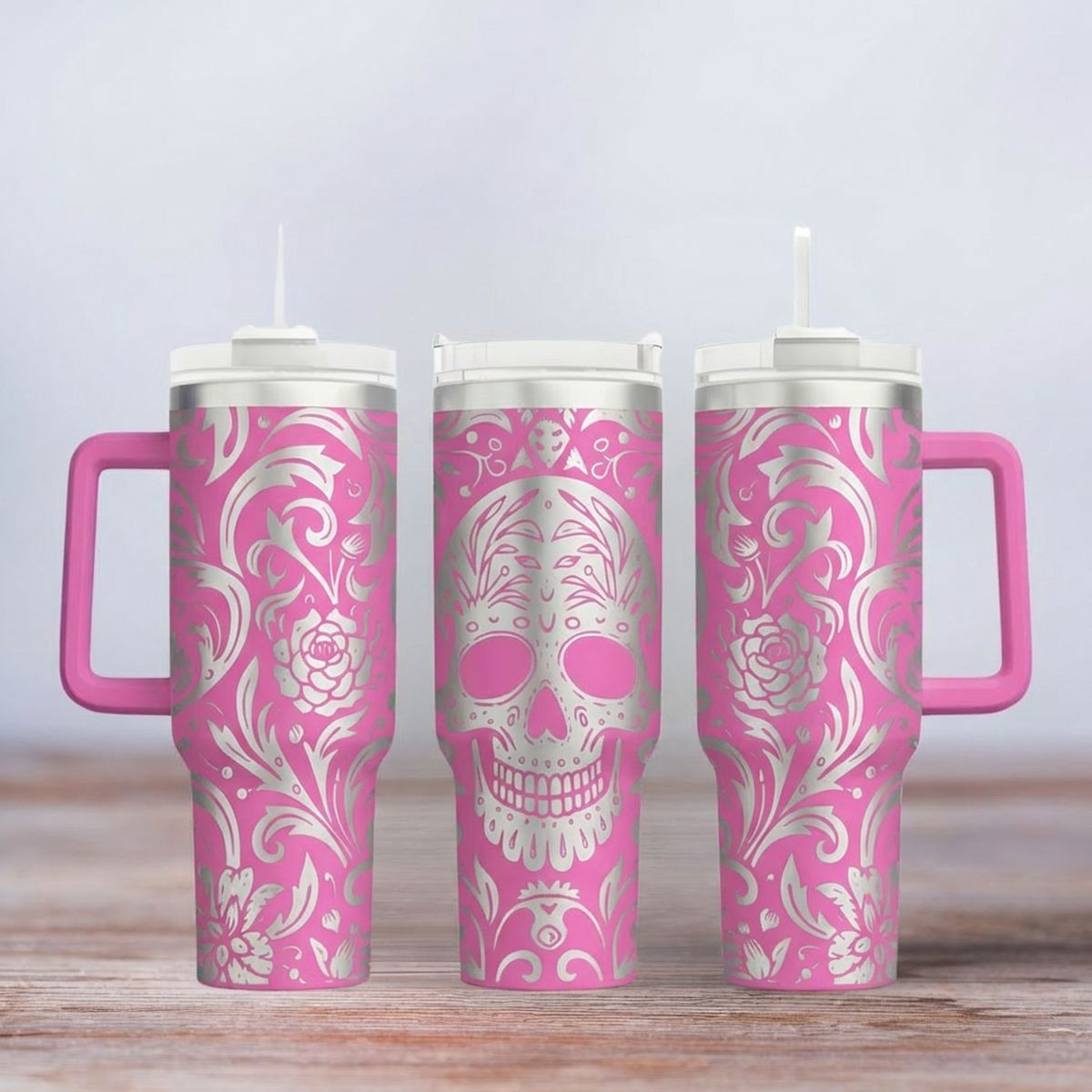 Das hochwertige Material sorgt nicht nur für Robustheit, sondern auch für einen modernen Look. Die präzise Lasergravur macht das Motiv "Skull Tattoo" zu einem echten Highlight. Mit einem großzügigen Fassungsvermögen von 1,2 Litern bist du immer bestens versorgt – ideal für Kaffee, Tee, Wasser oder Erfrischungsgetränke to go.