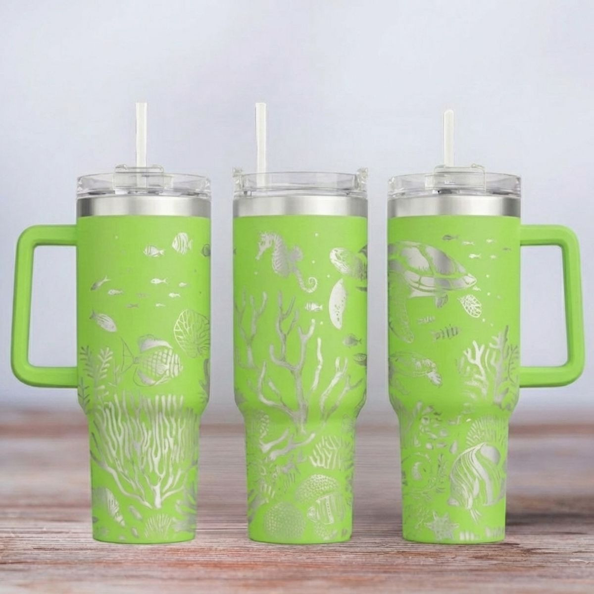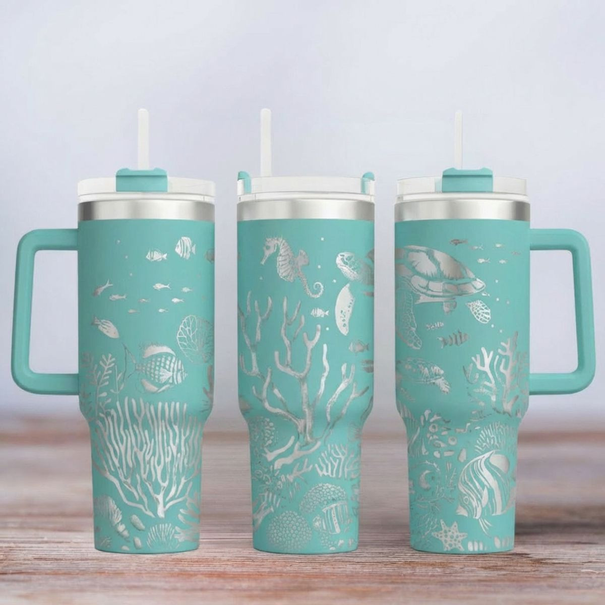 Das hochwertige Material sorgt nicht nur für Robustheit, sondern auch für einen modernen Look. Die präzise Lasergravur macht das Motiv "Unter dem Meer" zu einem echten Highlight. Mit einem großzügigen Fassungsvermögen von 1,2 Litern bist du immer bestens versorgt – ideal für Kaffee, Tee, Wasser oder Erfrischungsgetränke to go.